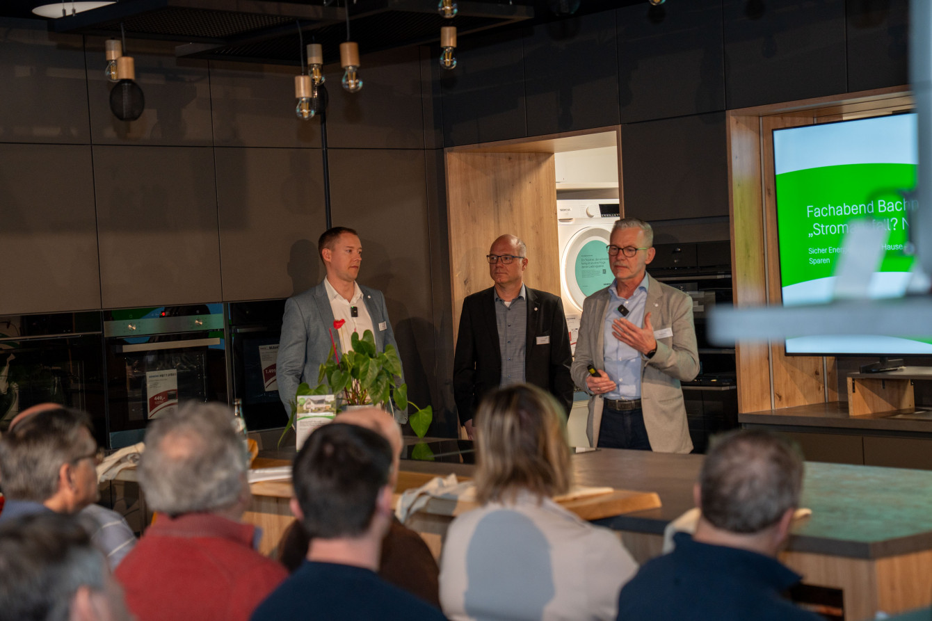 Die Infoveranstaltung von Bachner Green Energy am 19. März 2026 im Bachner Home war ein voller Erfolg. Der Abend stand unter dem Motto „Sichere Energiewende zu Hause – intelligentes Heizen, Laden und Sparen“ und lockte 60 Gäste in das Mainburger Elektrofachgeschäft in der Bahnhofstraße. Im vergangenen Jahr fand die erste Ausgabe des Infoabends im Bachner Home statt, damals noch veranstaltet von Volthaus. „Wir freuen uns, dass unser Abend auch im zweiten Jahr so gut angenommen wird“, sagt Thomas Üffink, Geschäftsführer von Bachner Green Energy. „Die Veranstaltung war so schnell ausgebucht, dass wir sogar noch einen zweiten Termin am 23. April anbieten werden.“
