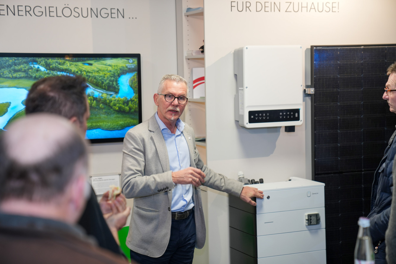 Im Hauptvortrag informierten Harald Stark und Stefan Arlt von Bachner Green Energy über die sichere und intelligente Energieversorgung von Eigenheimen. Einer der zentralen Punkte war die ganzheitliche Betrachtung eines modernen Energiesystems und das Zusammenwirken von Photovoltaikanlage, Wärmepumpe, E-Mobilität, Stromspeicher und Energie-managementsysteme. Solche Gesamtsysteme sind nicht nur kostengünstiger im Betrieb, sondern machen auch unabhängiger. Denn, wie Stark und Arlt erklären, sind Photovoltaikanlagen und Stromspeicher die Grundlage für eine unabhängige Stromversorgung und können ein Haus auch mit Notstrom versorgen. Vor dem Hintergrund von Stromausfällen wie im Januar in Berlin ist diese Funktionalität bei Kunden derzeit sehr gefragt,