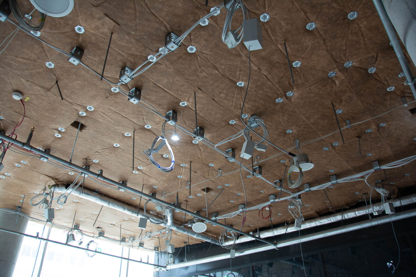 Beim Rundgang gibt es nahezu kein elektrisches Teil, das nicht einen Anknüpfungspunkt zu einem Bachner-Mitarbeiter hat – davon gab es zu Höchstzeiten über 90, die von sechs Bauleitern koordiniert wurden. Sie sind für die Bereiche Kongresszentrum & Audimax, Bürogebäude & Mall, Tiefgarage, Hotel/Gästehaus & Technikzentralen, MSR-Technik sowie Nachrichtentechnik zuständig. Der Umfang dieser Einzelbereiche ist gewaltig. Installationen wie Beleuchtung, Sicherheitsbeleuchtung, Brandmeldeanlage und deren Verkabelung sind allgegenwärtig, ganz gleich, ob in öffentlichen Bereichen, Büros oder der Tiefgarage mit 540 Stellplätzen.